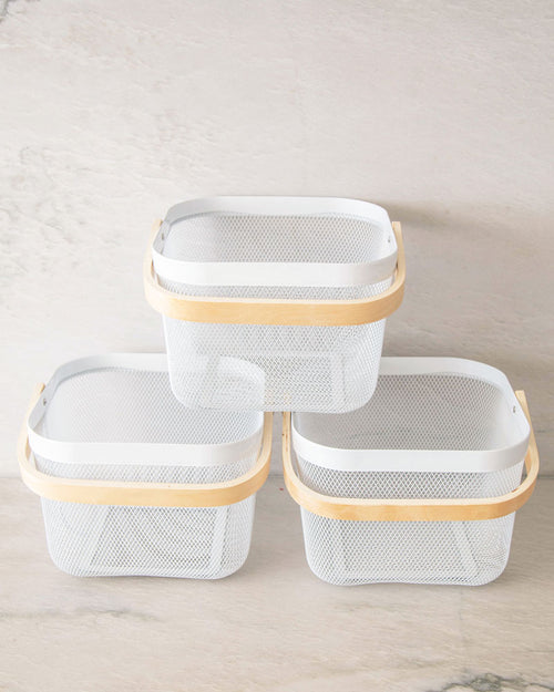 An organisational dream! Our baskets are super handy throughout the entire home. Use them in the kitchen to store snacks, fruit, potatoes, onions, cans and pantry staples. Or in the bathroom to store cleaning products, towels and essentials. You can also use them throughout your home to store arts & crafts, kids toys, clothes and more.