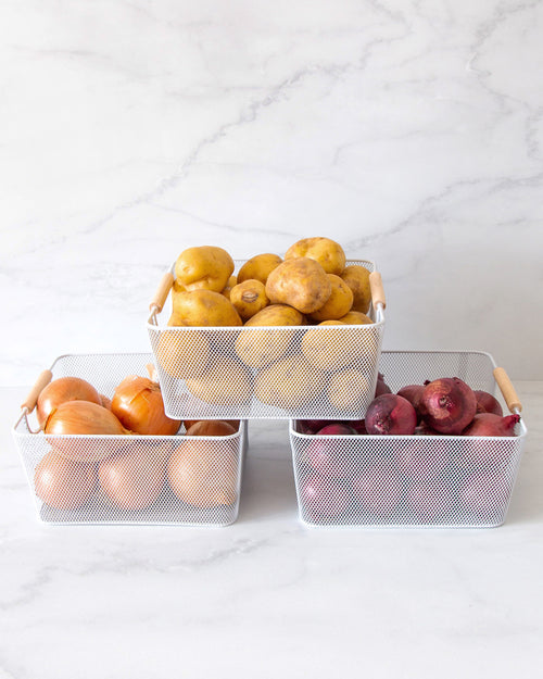 A practical and stylish way to organise any space in your home. The list of uses is endless...have fun and get creative! Store potatoes, onions, fruit, canned goods, snacks, kids toys, cleaning products, bathroom items and more.