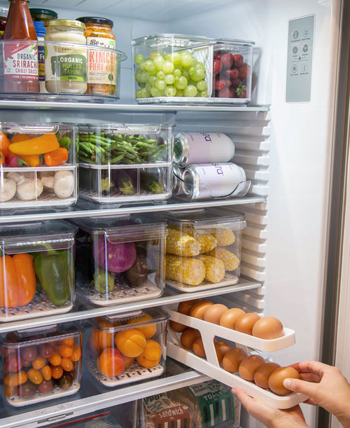 A fun and functional way to organise your eggs. Easily access your eggs without having to reach to the back of a container, maximise your fridge space, and ensure you are always using eggs from oldest to newest. When you pull out one egg, the built-in revolving system automatically rotates the eggs and dispenses them for you.