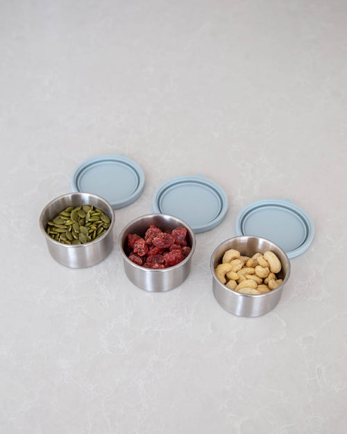 Say hello to our plastic free food storage containers. Our 100ml size was thoughtfully designed to store sauces, dressings, yoghurt, nuts, seeds, raisins and more. Featuring a leakproof silicone lid, they are perfect for everyday use!Β