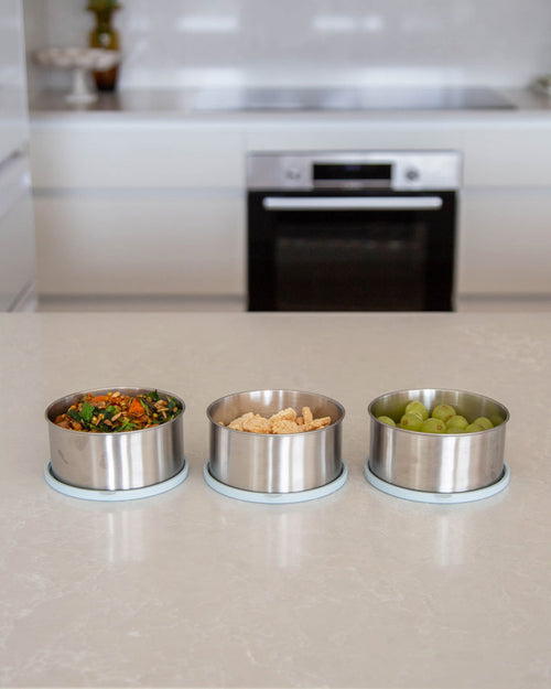 Say hello to our plastic free food storage containers. Our 680ml size was thoughtfully designed to store leftovers, salads, snacks, fruit and more. Featuring a leakproof silicone lid, they are perfect for everyday use!
