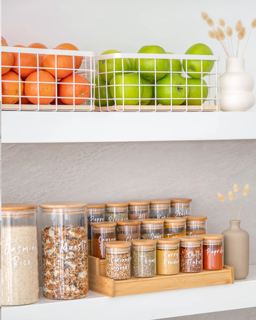 Give your pantry an ultimate makeover with our Deluxeย Glass & Bamboo Pantry Set. This set includes everything you need to take your pantry from chaotic to calm. All glass jars feature a natural bamboo lid finished with a silicone seal to ensure longevity, whilst also looking beautiful in your home for years to come.
